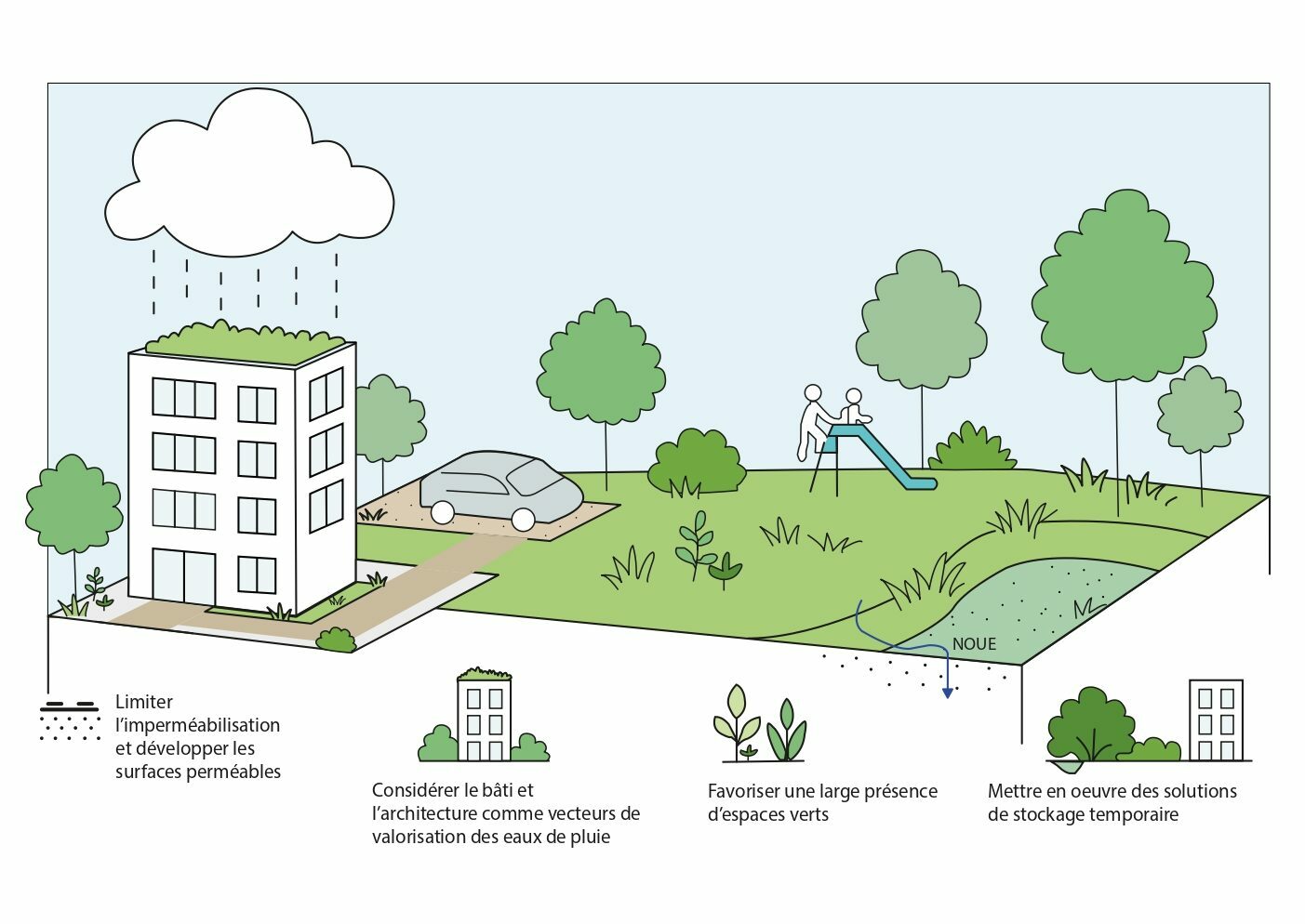 La stratégie Ville perméable, développée en partenariat actif entre la Métropole Nice Côte d’Azur, l’AUA et la Régie Eau d’Azur, permettra désormais de placer l’eau au cœur des politiques d’aménagement territorial, par des principes de gestion intégrée de l’eau de pluie, en privilégiant l’infiltration à la source, sauf impossibilité dûment démontrée.